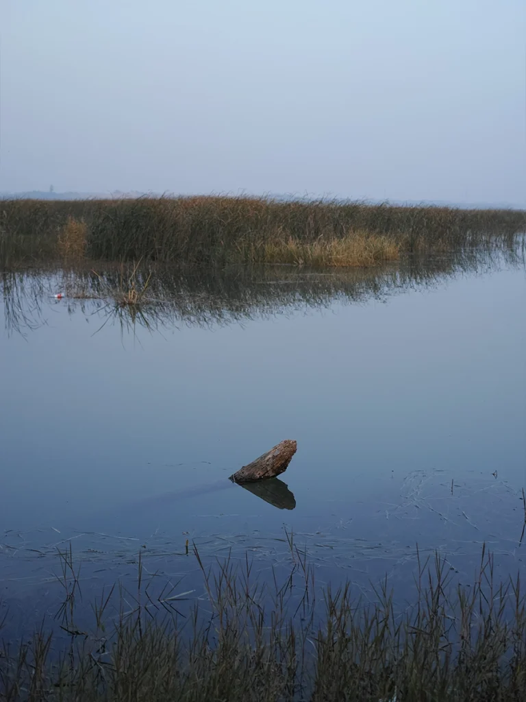 冬天的湖边非常冷,因为湖在北边,北边有北风,而北风只在冬天有。所以,冬天去湖边非常冷。这么冷的天气,拍出来的照片也很凝重,这种凝重就像冬天穿了好几套的衣服在身上,有保暖内衣、毛衣、棉外套或者羽绒服,没错,就是羽绒服或者棉外套穿在身上的那种凝重。而且衣服得是沉闷的颜色,比如黑、灰、棕。不过好在湖水的蓝色在这中间搭配得很好看。所以,建议靓仔和靓女们在冬天参考我照片里面的颜色进行穿搭,但不建议仅仅把袜子换成湖水蓝,因为太闷骚了!